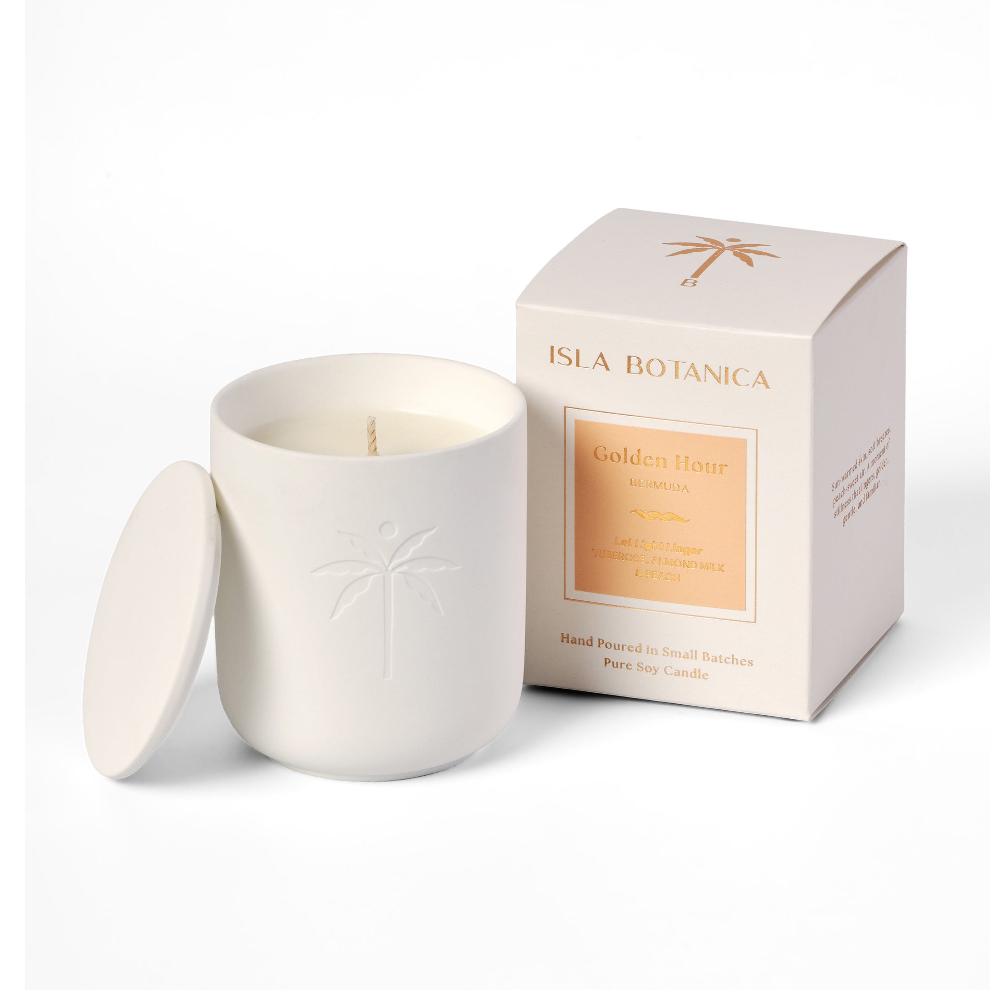 Hand-poured in Great Britain with a 100% sustainable soy wax blend, and presented in a reusable ceramic vessel with a matching lid. Inspired by the island’s golden sunsets, it brings the warmth of tropical evenings into your home.
