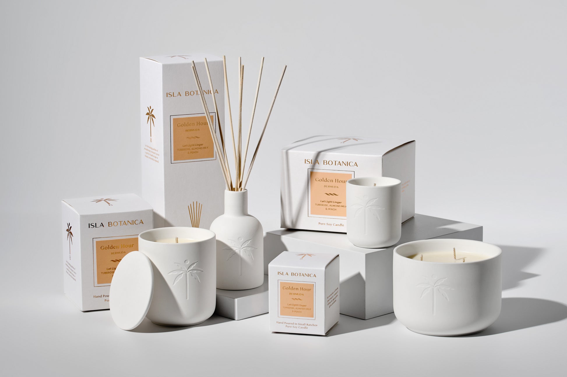 When the world softens and the light turns warm, everything feels at ease. Golden Hour captures this fleeting glow with creamy tuberose, ripe peach, and velvety almond milk, deepened by patchouli and a touch of black pepper. Sunlit and soothing, it wraps you in the quiet comfort of tropical living.